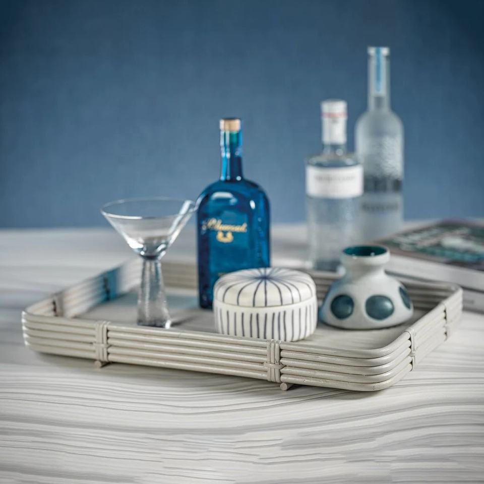 Bandeja rectangular de ratán gris multiusos de nueva tendencia de aspecto exótico de Thien Thanh