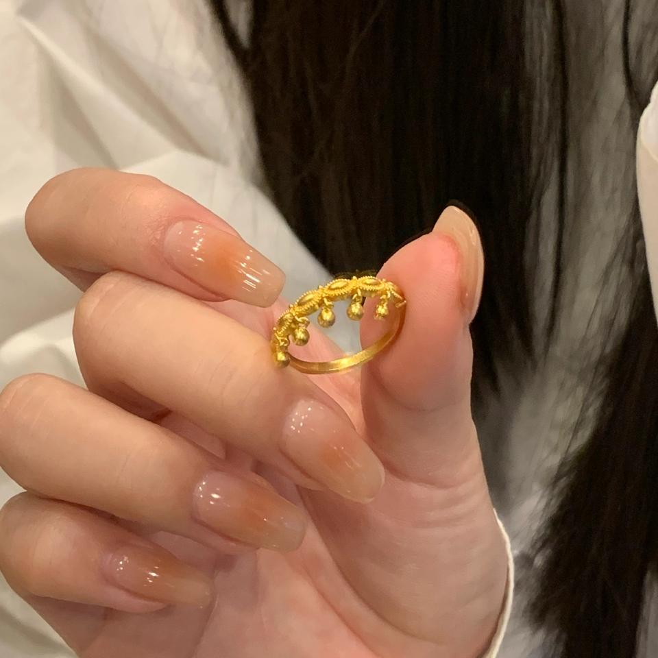 Anillo Bohemio Vintage Exótico con Plata de Ley S925 y Oro de 18K, Flecos Ondulados y Colgante de Cuentas, Colección de Anillos Finos