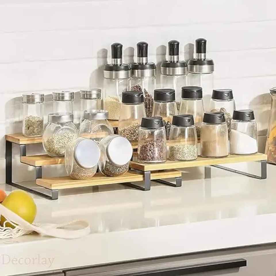 Estante Organizador de Especias de Bambú Expandible de 3 Niveles para Armario de Cocina, Encimera, Soporte de Madera para Botellas de Condimento