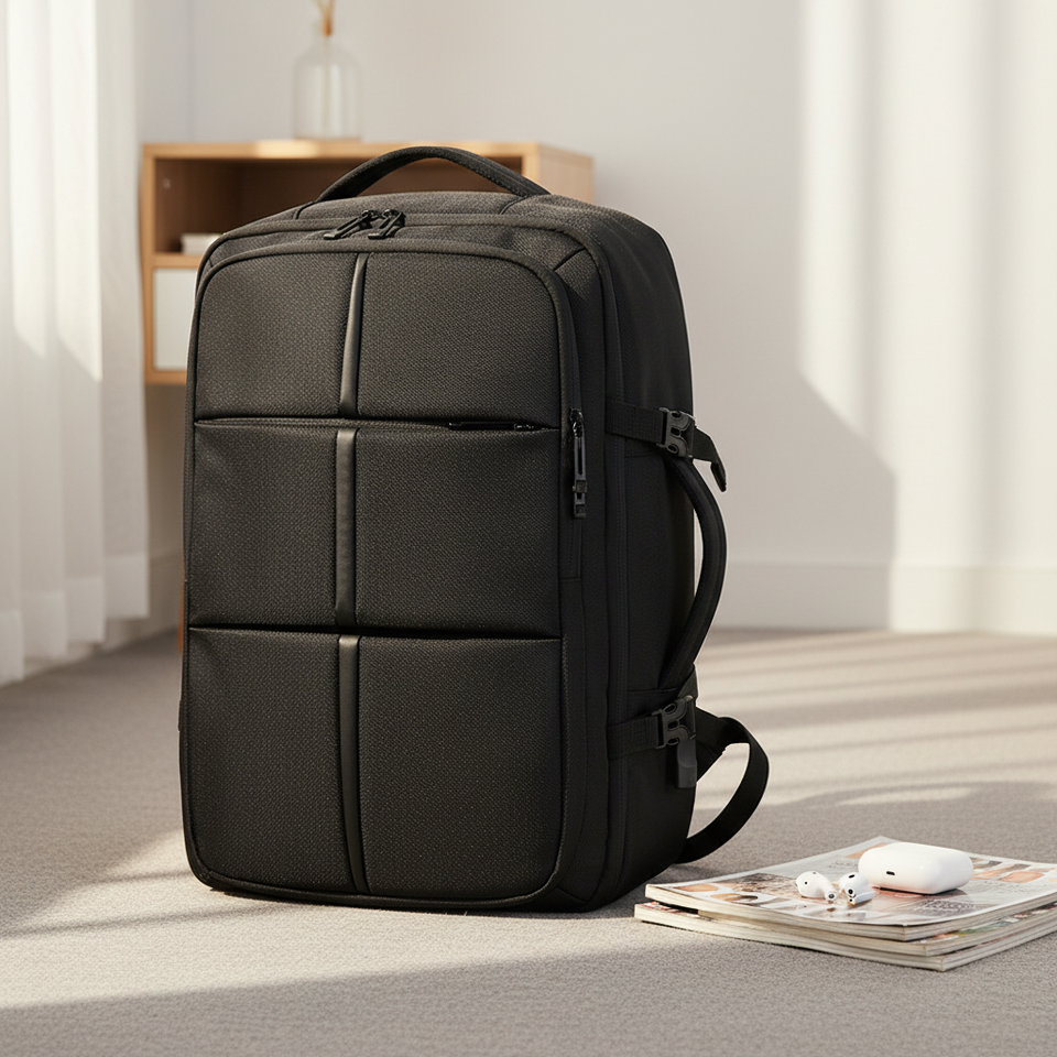 Mochila Expandible con Impresión de Logotipo, Gran Capacidad de 20 a 35 Litros, Compartimento Independiente para Zapatos, Mochila para Portátil de Nailon