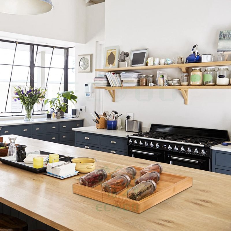 Organizador de estante de especias de bambú expandible-Se adapta a 30 tarros de especias para almacenamiento de cajones