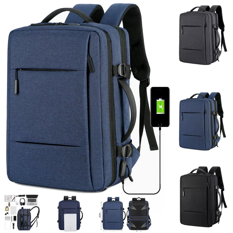 Mochila de mano expandible para computadora portátil unisex, mochilas ligeras para computadora portátil escolar con carga USB de impresión sólida