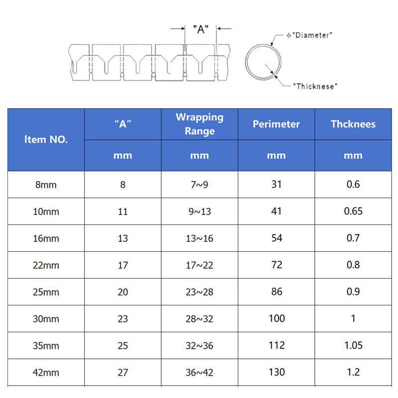 8mm(0.31in), 12mm(0.47in), 16mm(0.63in), 28 mm(1.10in), 22mm(0.87in), 32mm(1.26in), 36mm(1.42in), 42mm(1.65in)