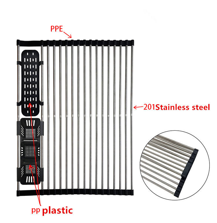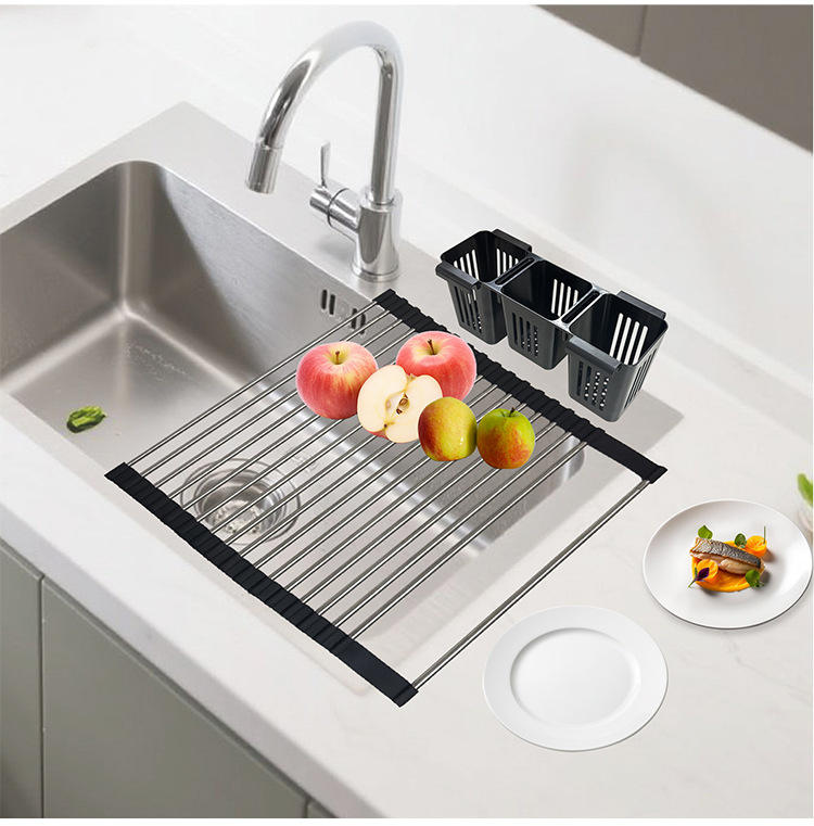 Escurridor de Platos Enrollable Expandible para Fregadero, Escurridor de Platos Enrollable de Acero Inoxidable para Cocina