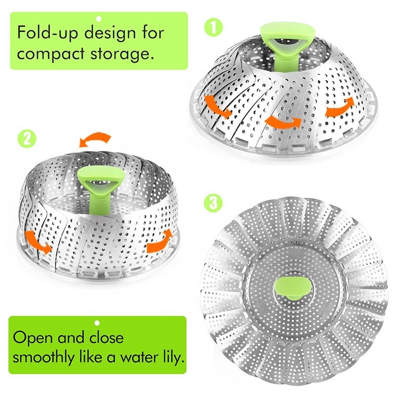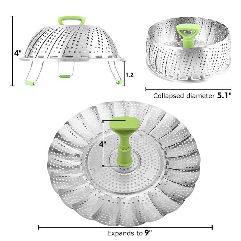 Vaporizador expandible de acero inoxidable para verduras, cesta de acero inoxidable para cocinar pescado y mariscos