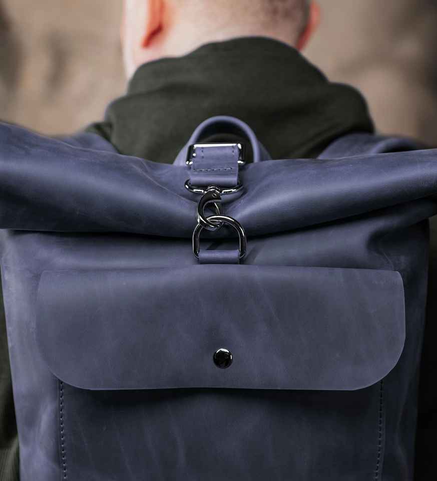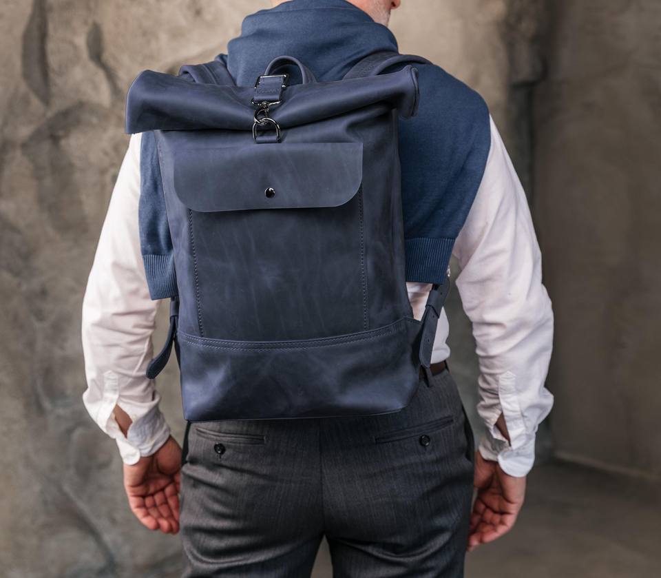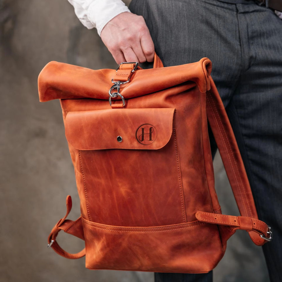 Mochila de Cuero Genuino con Cierre Enrollable