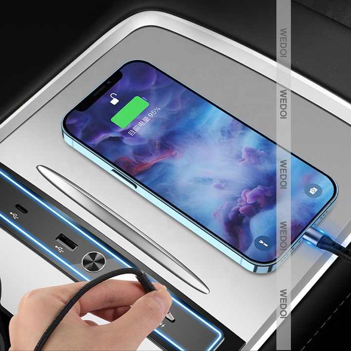 Base de expansión 27W cargador rápido USB HUB para Tesla Modelo 3 Y carga USB C accesorio LED luz 4 en 1 HUB
