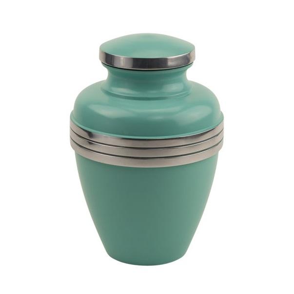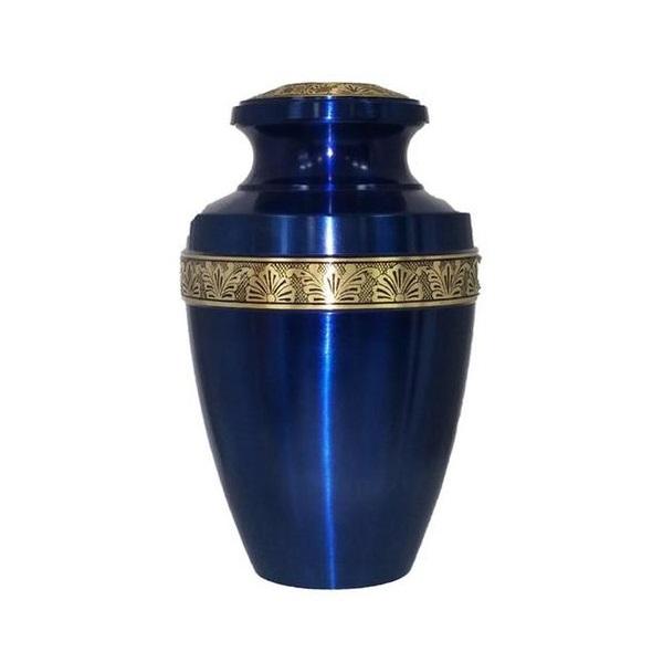 Urna Funeraria Grande de Latón con Diseño Exclusivo, Color Azul con Banda Dorada, para Cenizas Humanas, Urnas para Adultos, Artículos Funerarios
