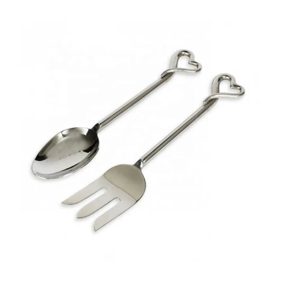 Juego de Cuchara y Tenedor para Ensalada de Metal de Alta Calidad con Mango en Forma de Corazón para Hogar y Hoteles, Juego de Servidores de Ensalada Plateados