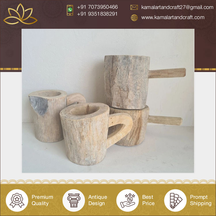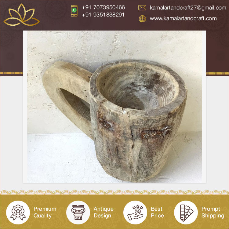 Jarra de un solo mango Vintage de madera de estilo antiguo elaborada por expertos, decoración del hogar de alta calidad estándar, regalos artísticos de Navidad
