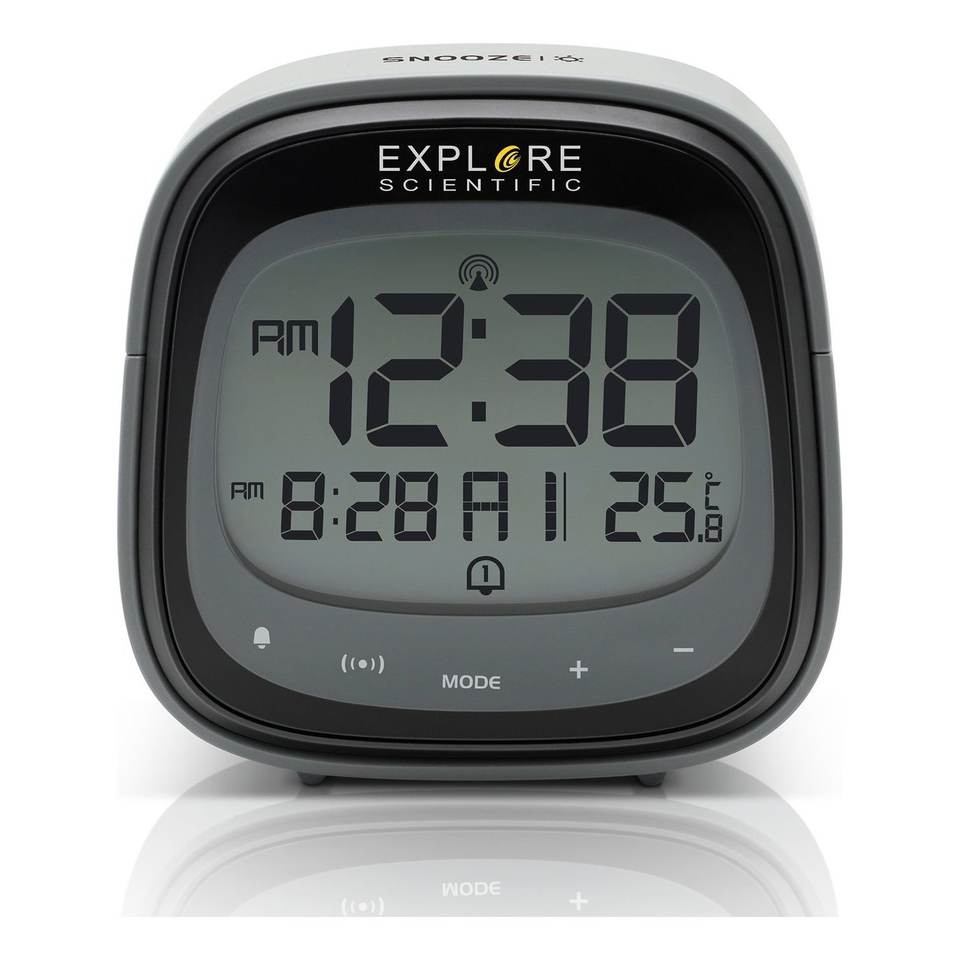 Reloj de Mesa Inteligente Explore Scientific RDC3006, Multifunción, Radiocontrolado, con Alarma, Negro y Gris