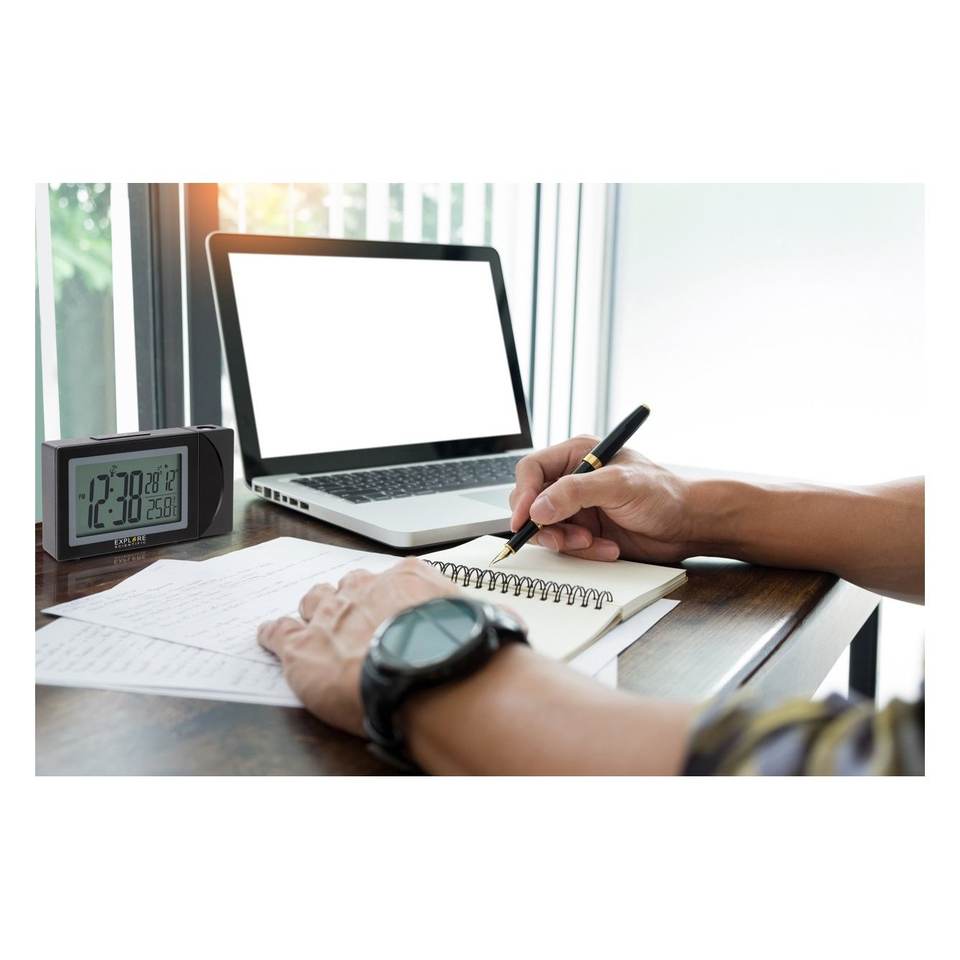 Reloj de Mesa Inteligente Multifunción con Control por Radio y Alarma, Modelo RDP1002BLK de Explore Scientific, Color Negro