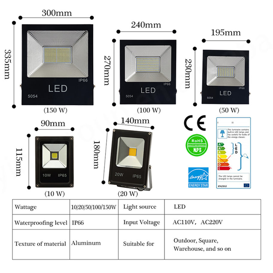 outdoor 2000 lumen 20w 30w 50w 100w 150w 200w 300w led floodlight