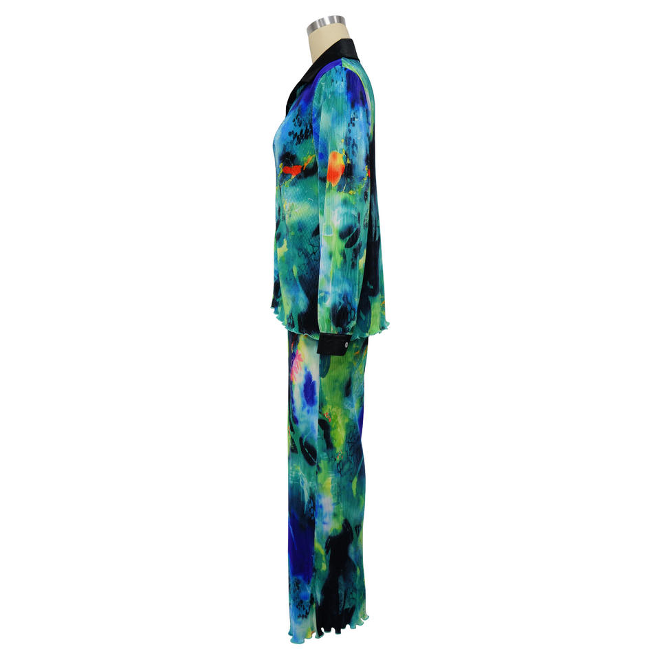 Nuevo Conjunto de Dos Piezas para Mujer, Pantalones Anchos de Pierna Larga con Estampado Plisado, Moda Explosiva