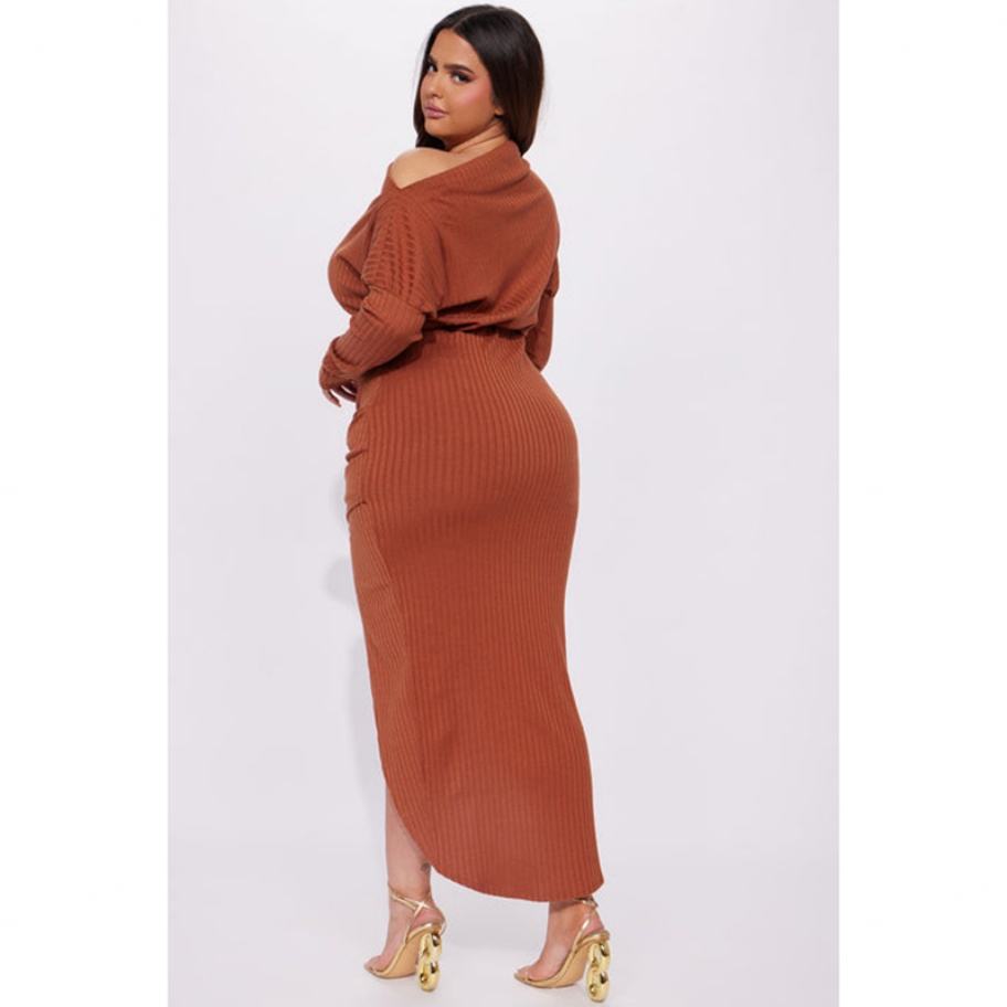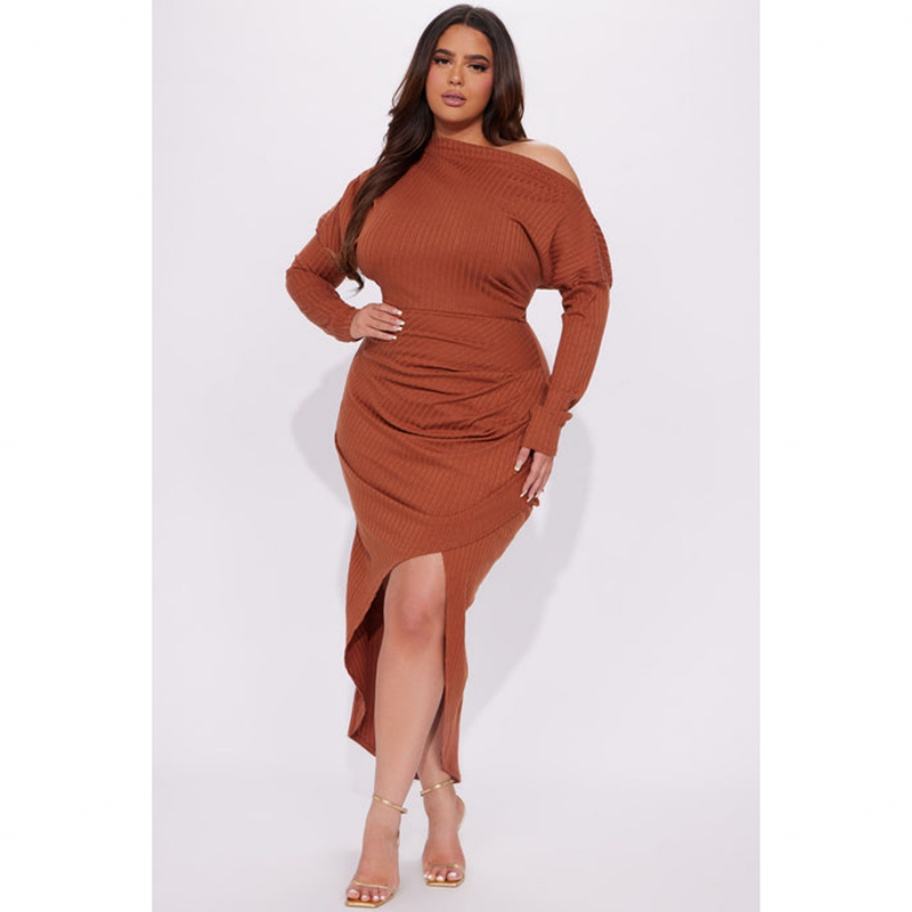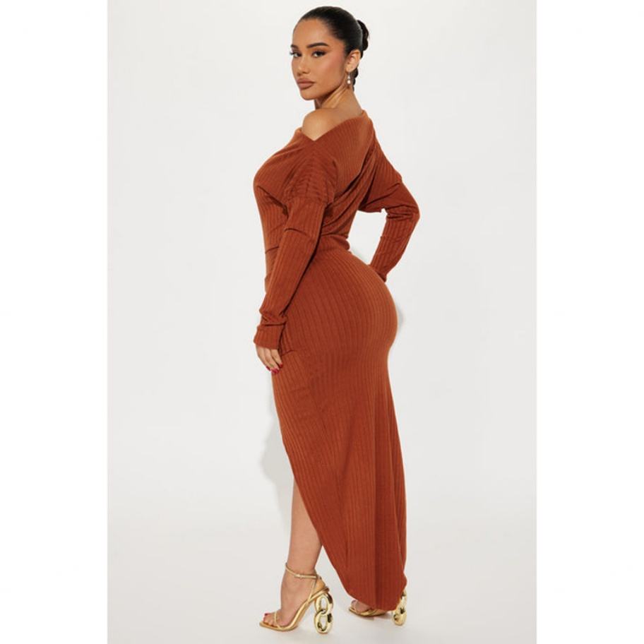Nuevos Productos Exclusivos: Vestido Maxi Casual de Invierno para Mujer con Estilo Personalizado, Acanalado, con Abertura Grande y Fruncido