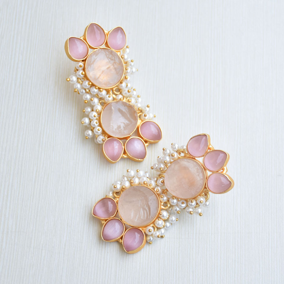 Product Name:Statement Rose Quartz earrings