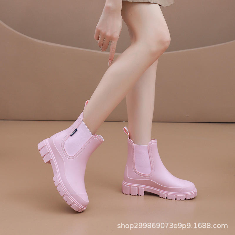 Botas de Lluvia Cortas de PVC con Resorte, Elásticas, Antideslizantes e Impermeables para Mujer, Calzado para Adultos