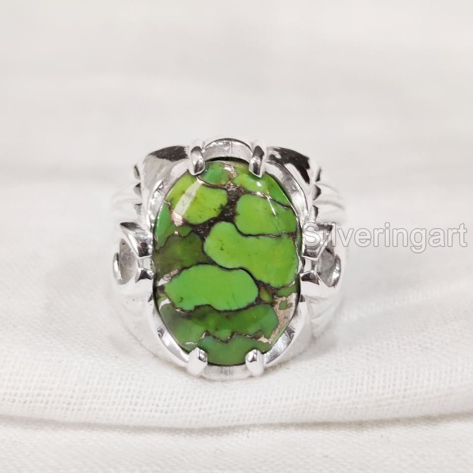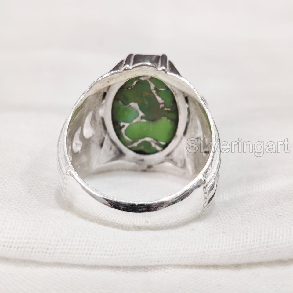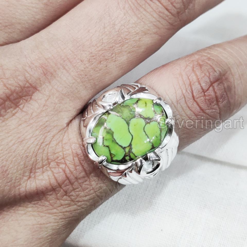 Anillo de exportación para hombre, cobre verde Natural, piedra preciosa turquesa, anillo de piedra natal de diciembre, joyería oriental pesada, anillo de Plata de Ley 925