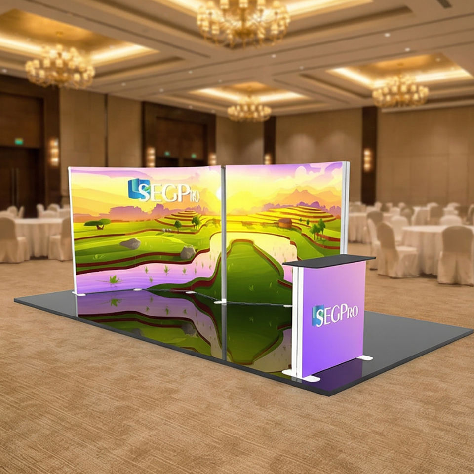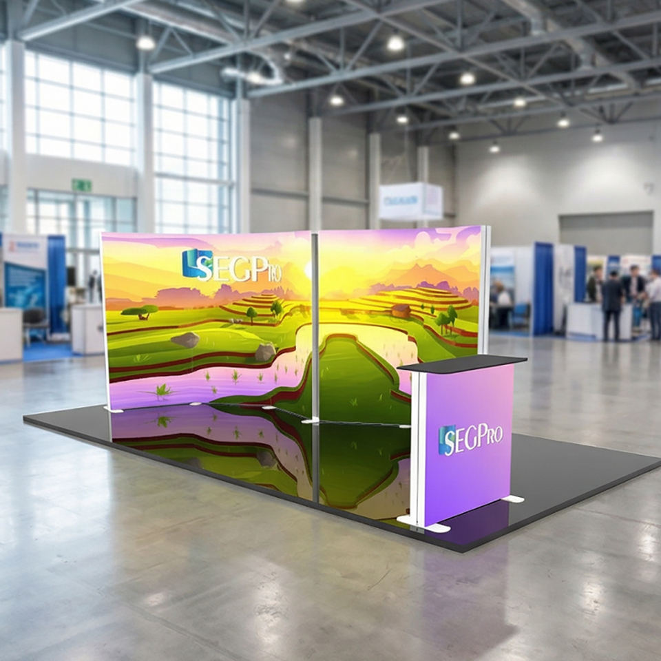Stand Modular de Tela para Exposiciones 20x10 con Gráficos de Tela Tensada sin Arrugas
