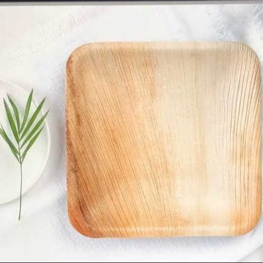 Export Quality 10-Inch Square Modern Areca Palm Leaf Dinner Plates Eco-Friendly Compostable Disposable Hotel Cafe Catering Plate