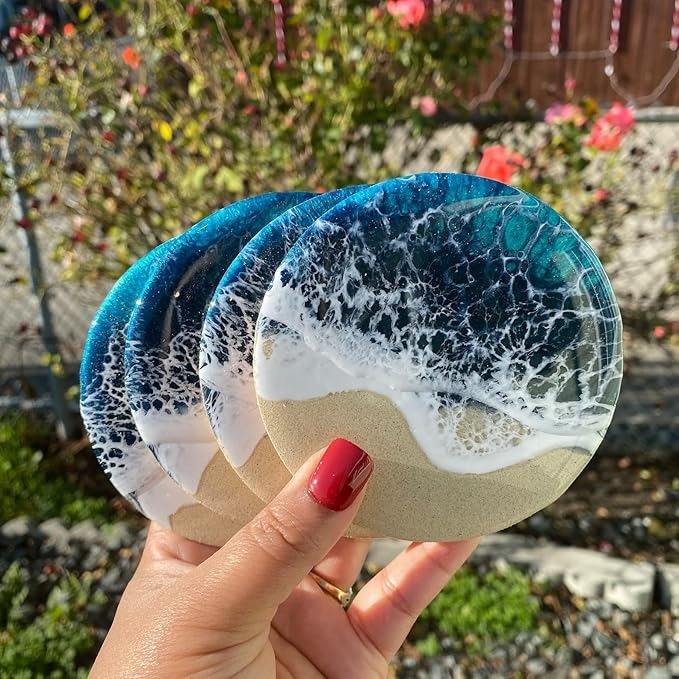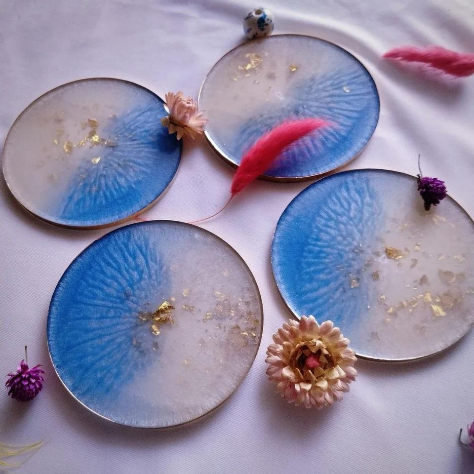 Posavasos de té de resina personalizados creativos de calidad de exportación diseños personalizados con flores secas brillo o lámina de oro disponibles para la venta