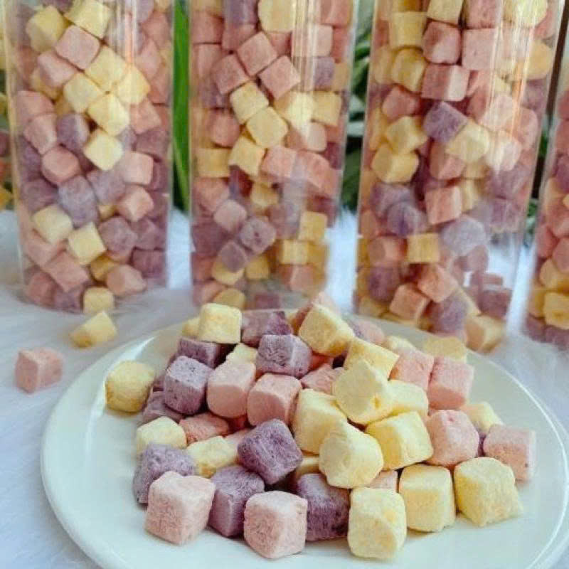 Cubos de Yogur Liofilizado Crujiente de Calidad de Exportación, Fruta Mixta Dulce, Fresa, Arándano, Mango, Yogur Liofilizado