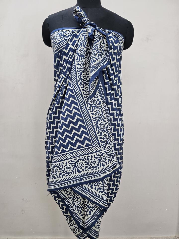 Indigo Hand Block Printed Sarong Scarf Pareo