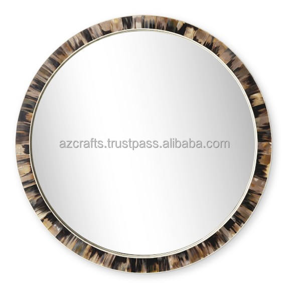 Espejo decorativo con incrustación de hueso de la India, marco de espejo con cuerno Natural redondo, calidad de exportación, 1 ud.