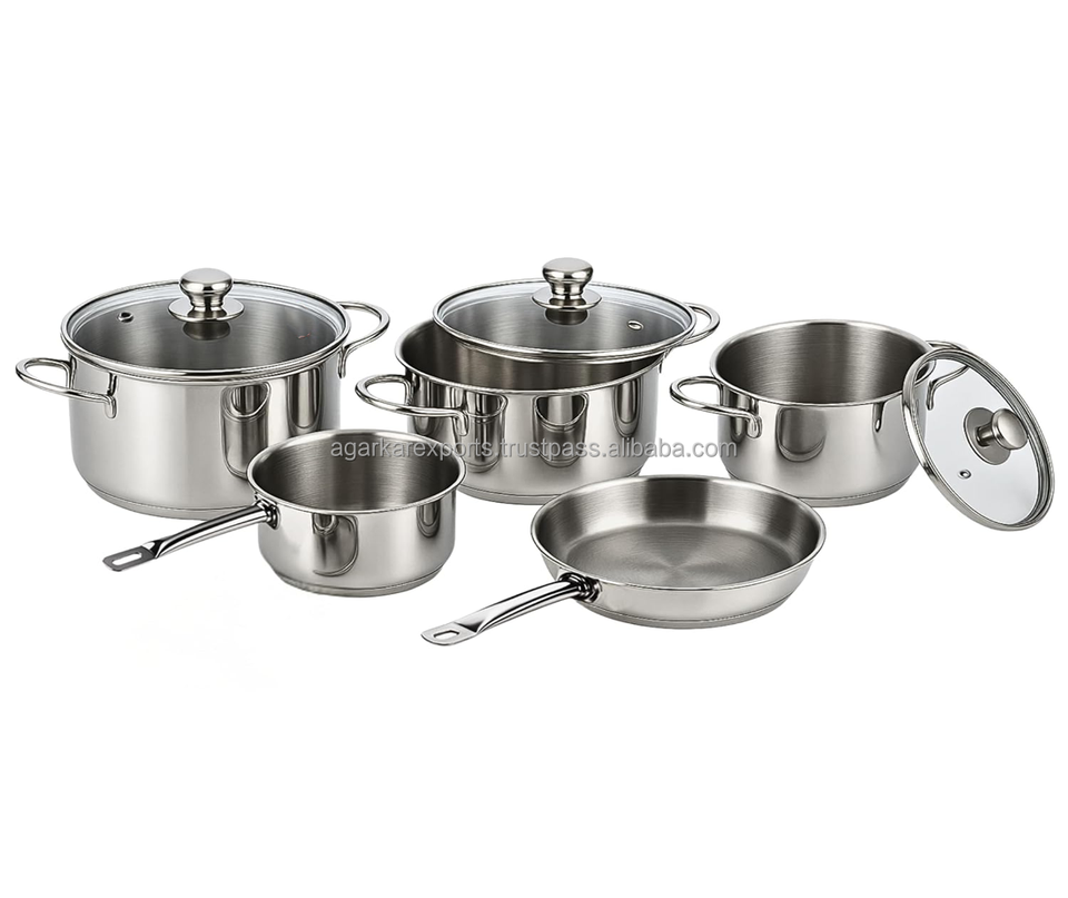 Juego de Ollas de Cocina de Acero Inoxidable de Calidad de Exportación | Cacerolas y Sartenes Aptas para Alimentos