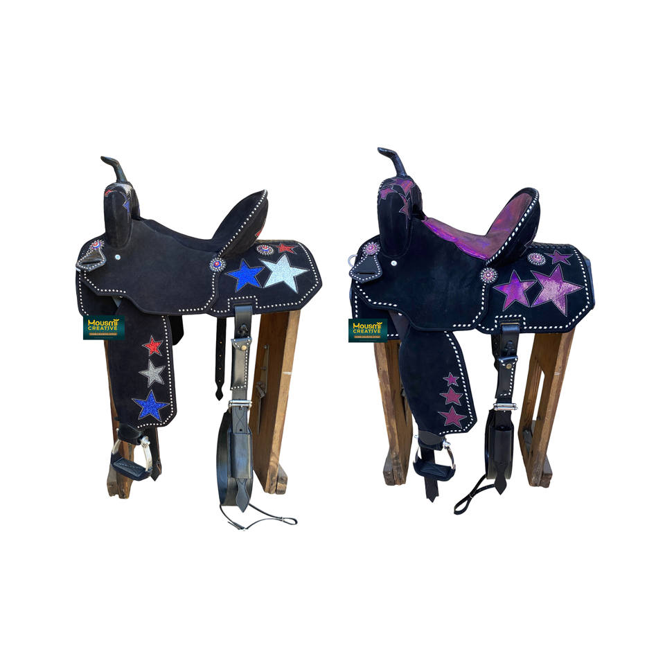 Product name:Western Horse Genuine Cowhide Suede Leather Glitter Seat Saddle