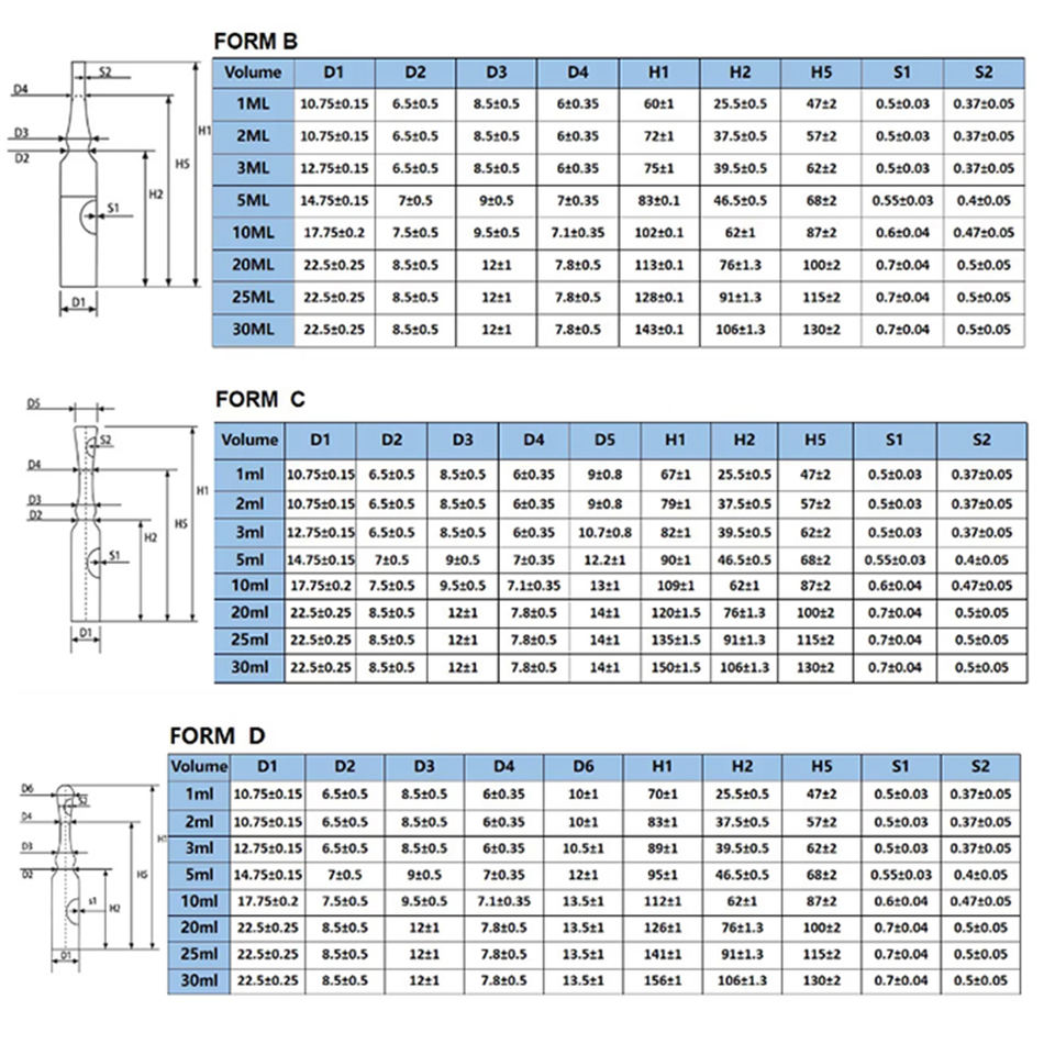 Ampolla de Vidrio Estándar para Exportación, Inyectables Sensibles, Incluyendo Vacunas, Hormonas, Sueros, Aplicaciones Veterinarias