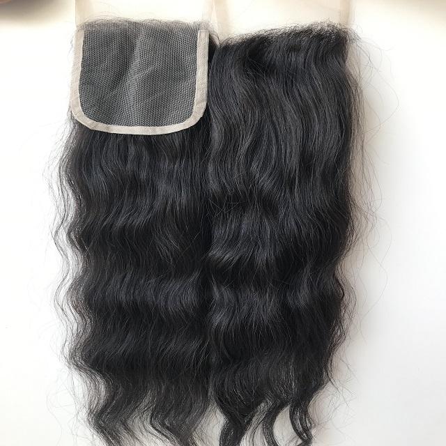 Top Export 100% Cutícula sin procesar alineada Templo indio 20 \ "4x4 Extensiones de cabello humano con cierre transparente HD ondulado natural