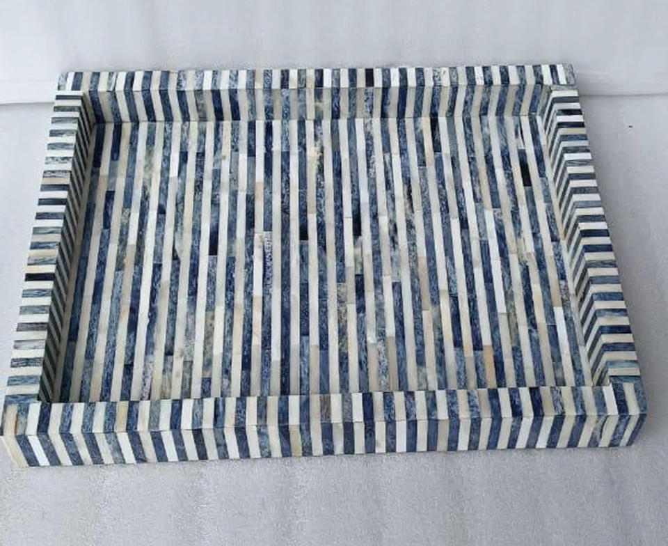 Bandeja de Servir con Incrustaciones de Hueso de Diseño Clásico y Aspecto Único, Bandejas de Madera para el Desayuno