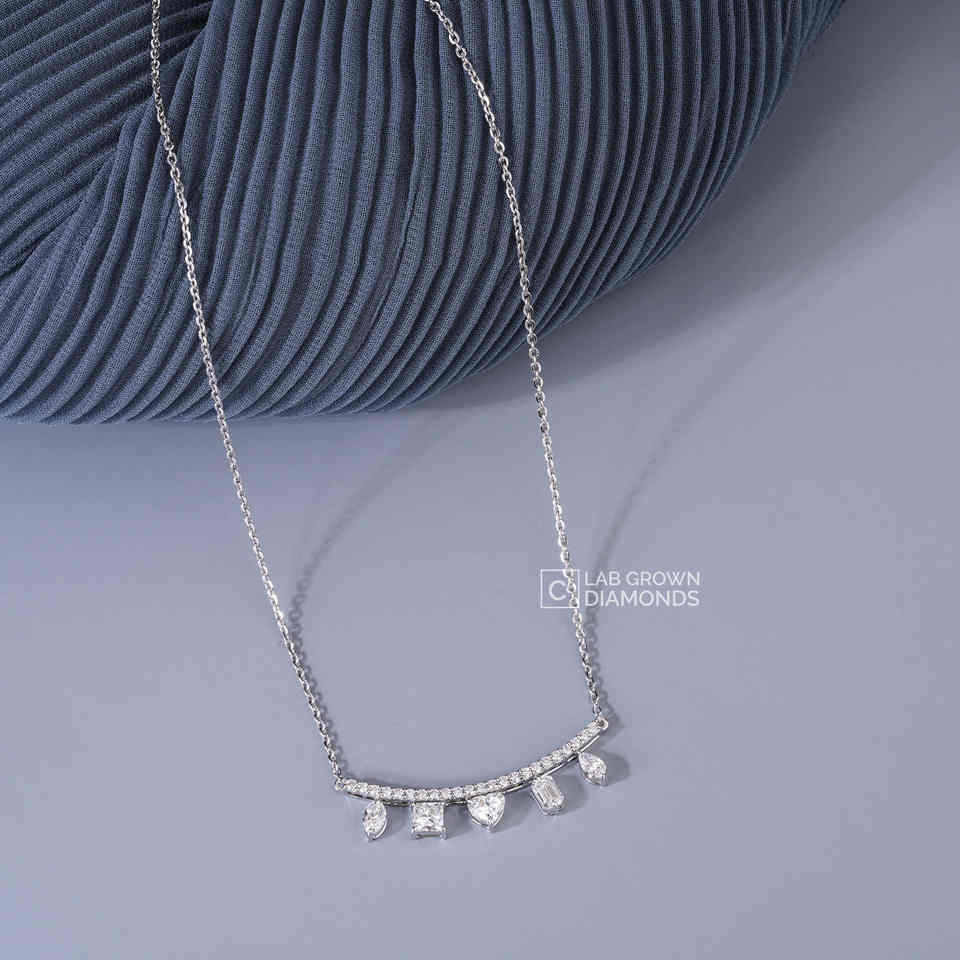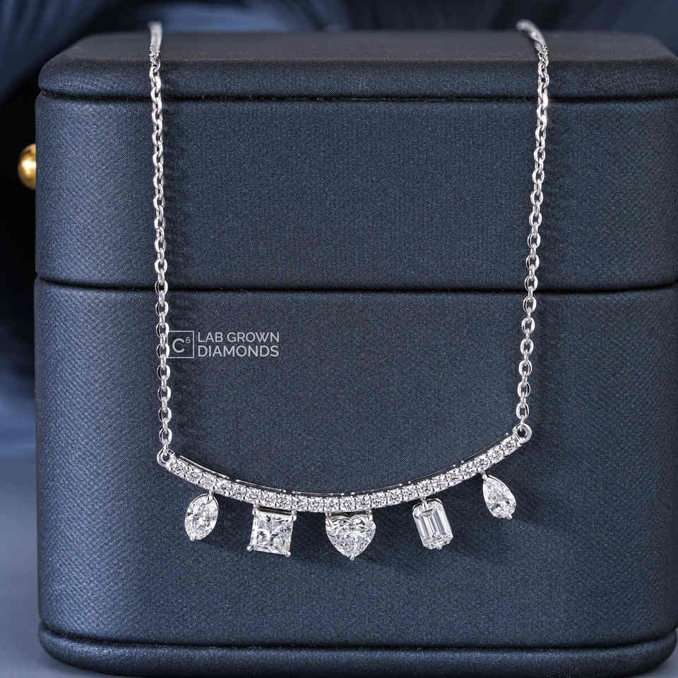 Exquisito Colgante de Diamantes Cultivados en Laboratorio en Oro Blanco de 14K con Múltiples Formas, Color EF, Esmeralda, Corazón, Óvalo, Princesa, Pera, Redondo, 1.55g