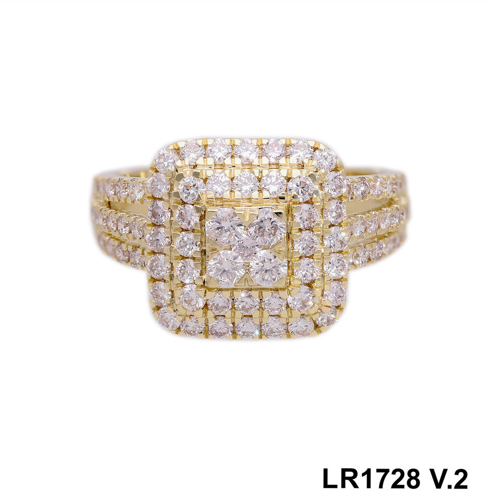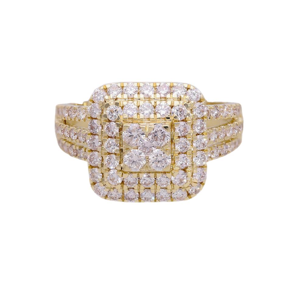 Exquisito Anillo de Diamantes Naturales de Corte Brillante en Varias Filas de Oro Amarillo de 14K, Anillo de Diamantes Engastados en Pavé, Chapado en Rodio para Mujer