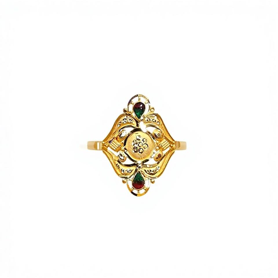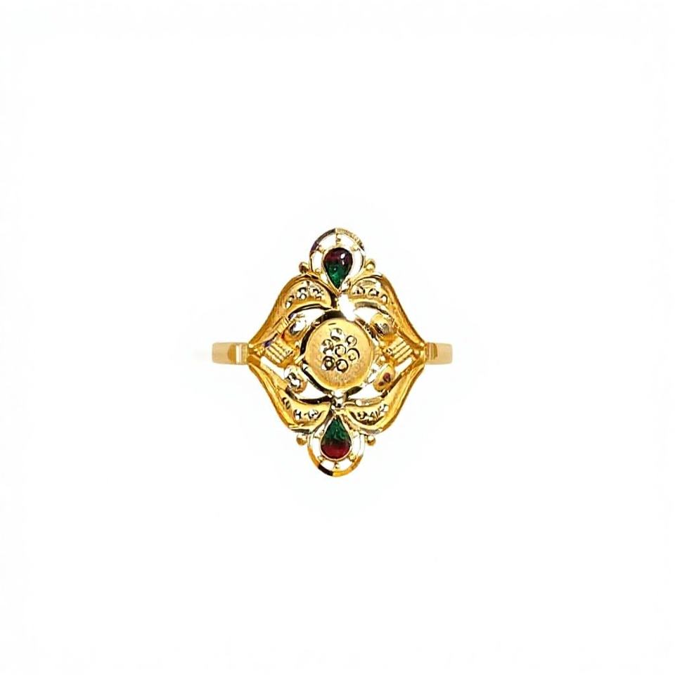 Exquisito Anillo de Dedo de Oro Sólido de 22K, Diseño Tradicional Indio Meenakari, Joyería de Oro Real Hecha a Mano para Mujeres y Novias