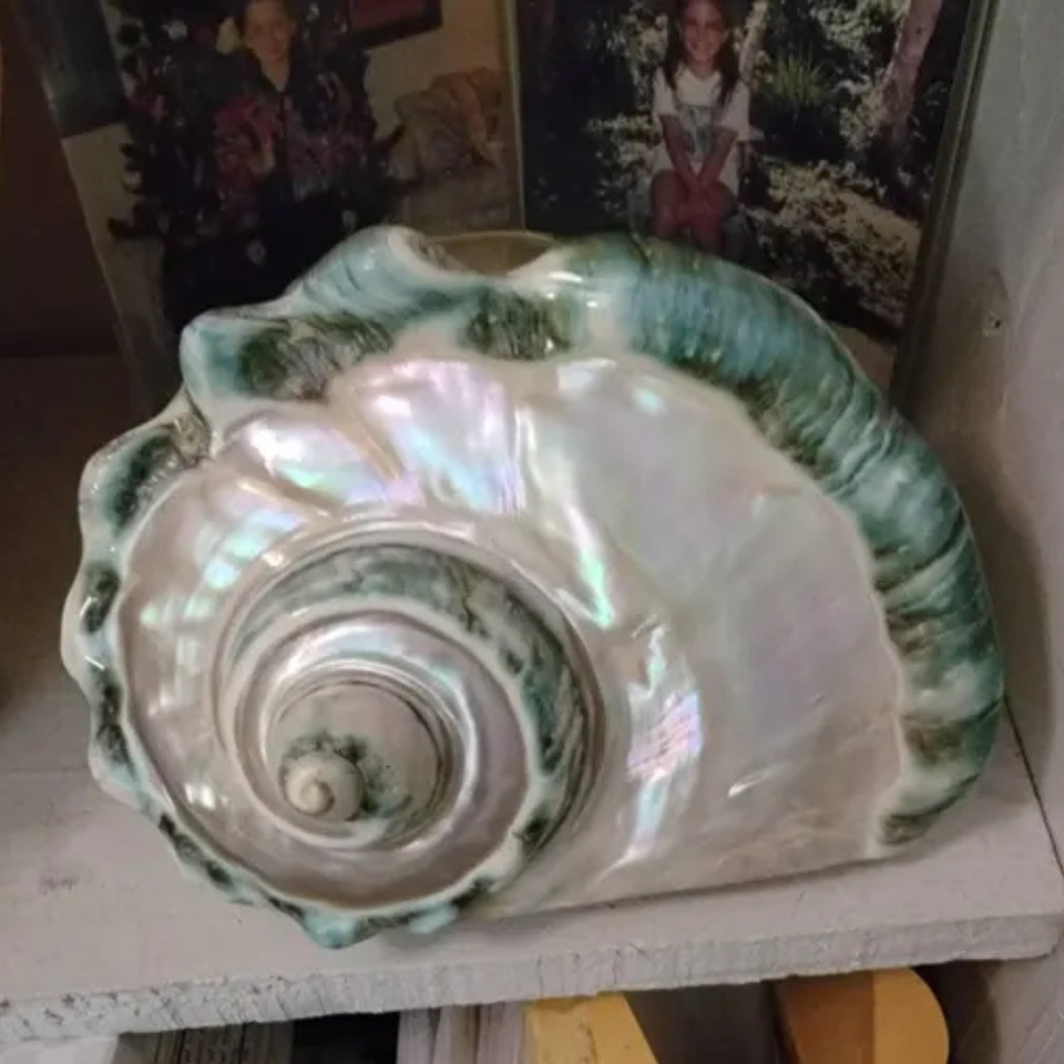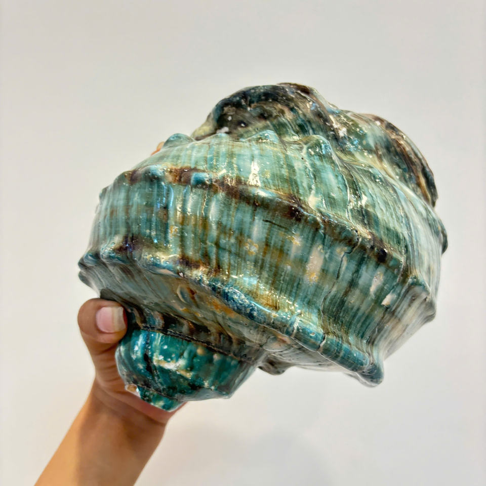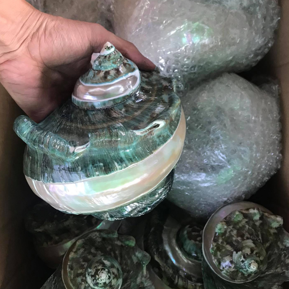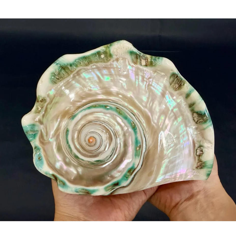Exquisita Concha de Caracol Bicolor: Gigante Turbo Marmoratus Verde | Concha Marina Iridiscente Premium Grande para Diseño de Interiores Náuticos