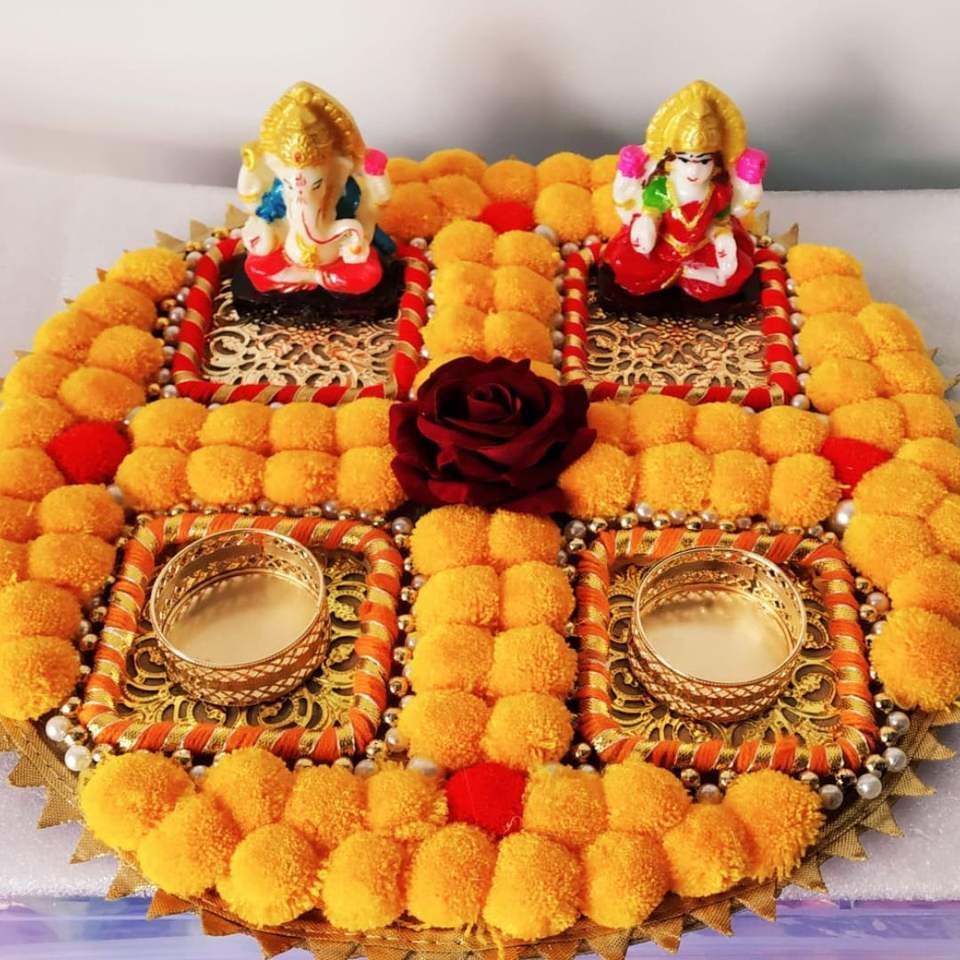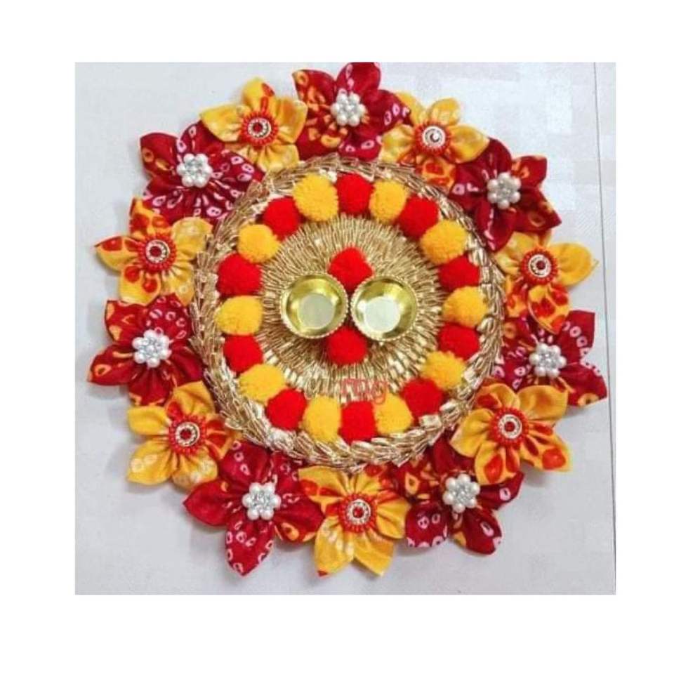 Exquisito portavelas Big Thali para Diwali Impresionante portavelas Pom Rangoli para celebrar Diwali con elegancia