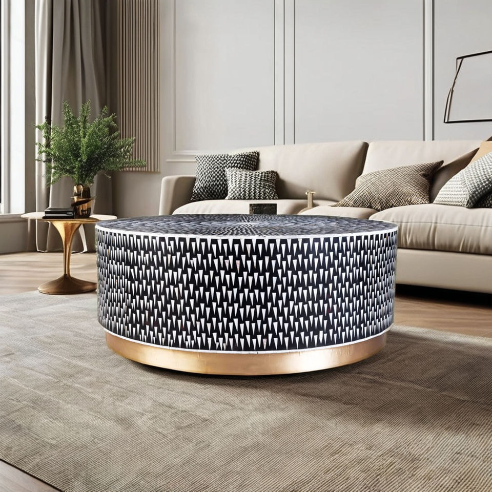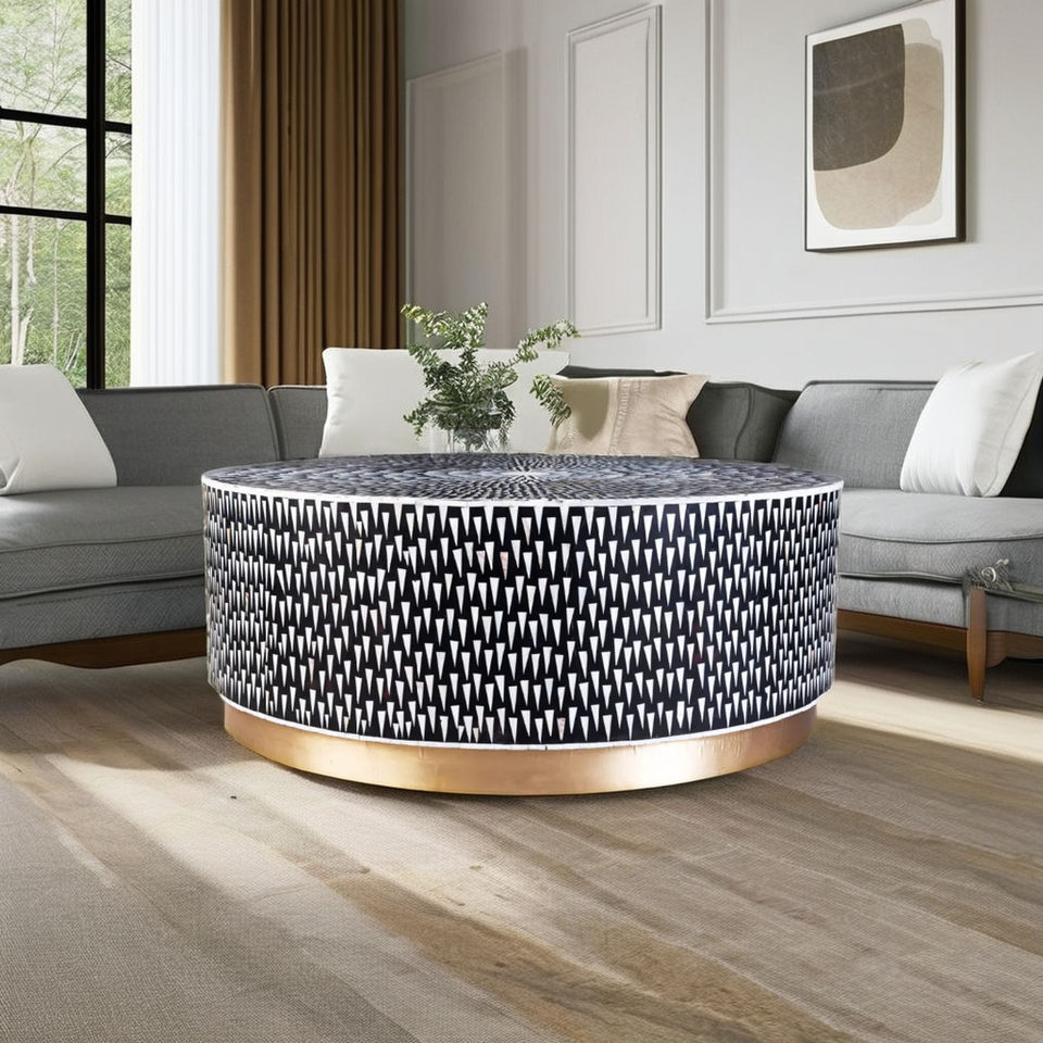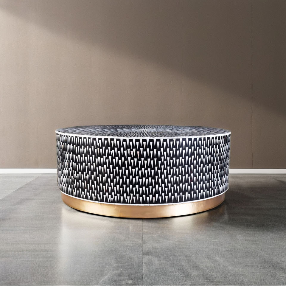 Exquisita mesa de centro con incrustaciones de hueso de Sunburst negro hecha a mano, opción de lujo con estilo de diseño minimalista