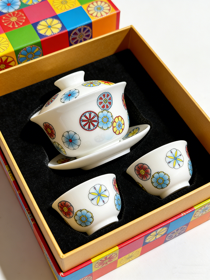 Exquisito Juego de Té Chino Kungfu, Gaiwan de Porcelana Tradicional sin Asa con Taza de Té y Caja de Regalo de Alta Gama