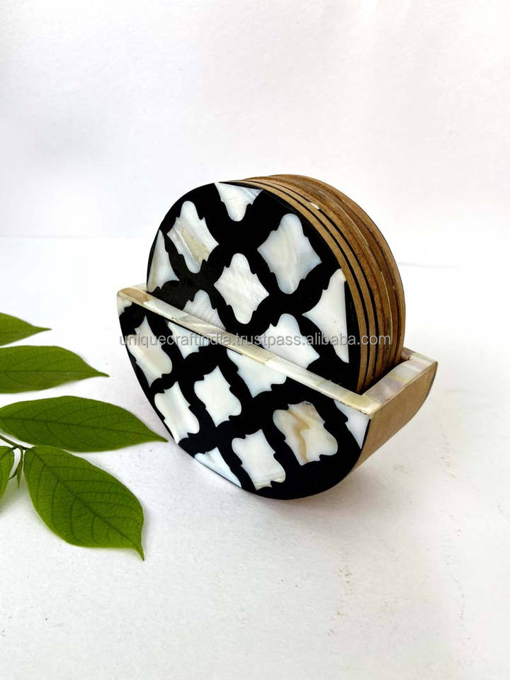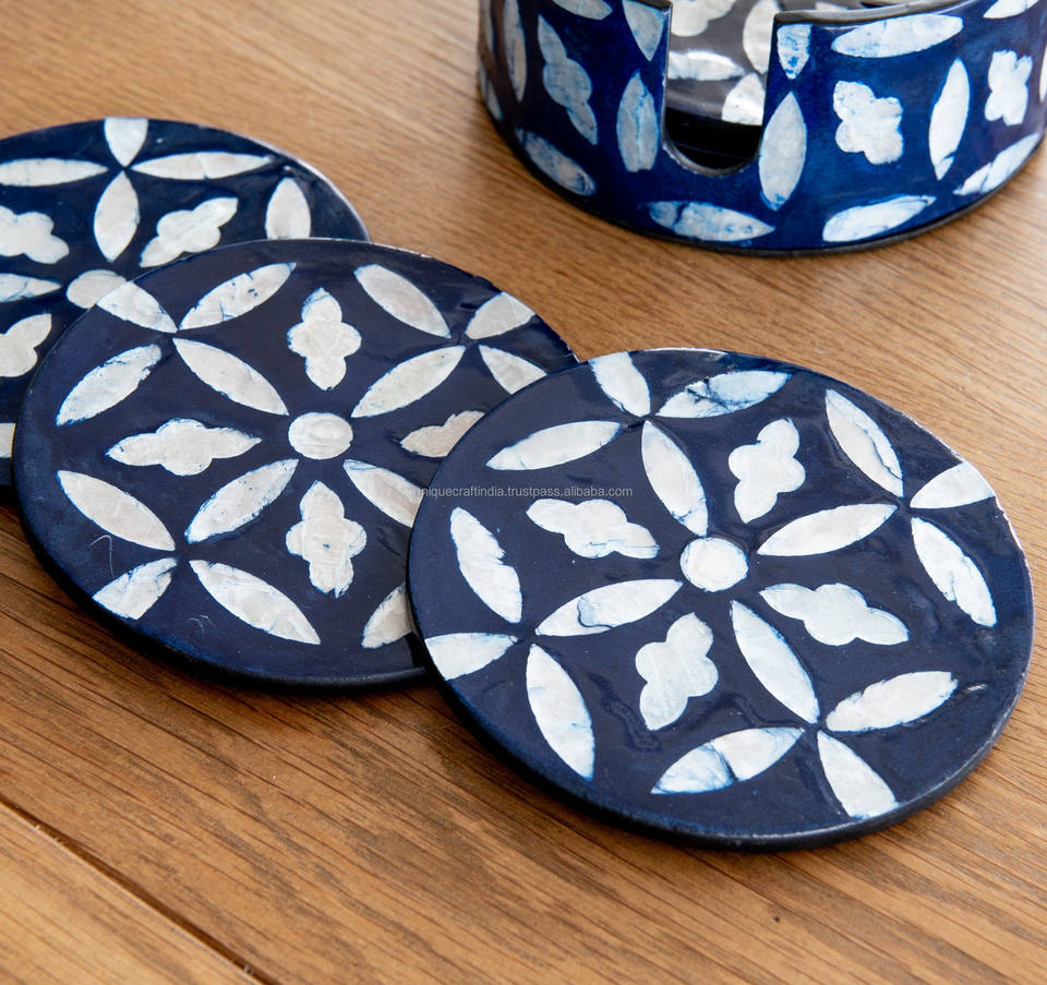 Exquisito Coastal Chic Square Shell Drink Mats Luminous Pearl Inlay Posavasos Set Boda Lujo Rústico Decoración para el hogar Mesa