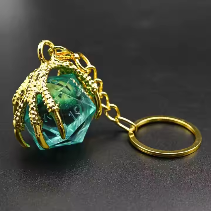 Exquisito D20 Liquid Dragon Eye Random Bulk DND Dice Resina Metal Llavero para juegos de rol