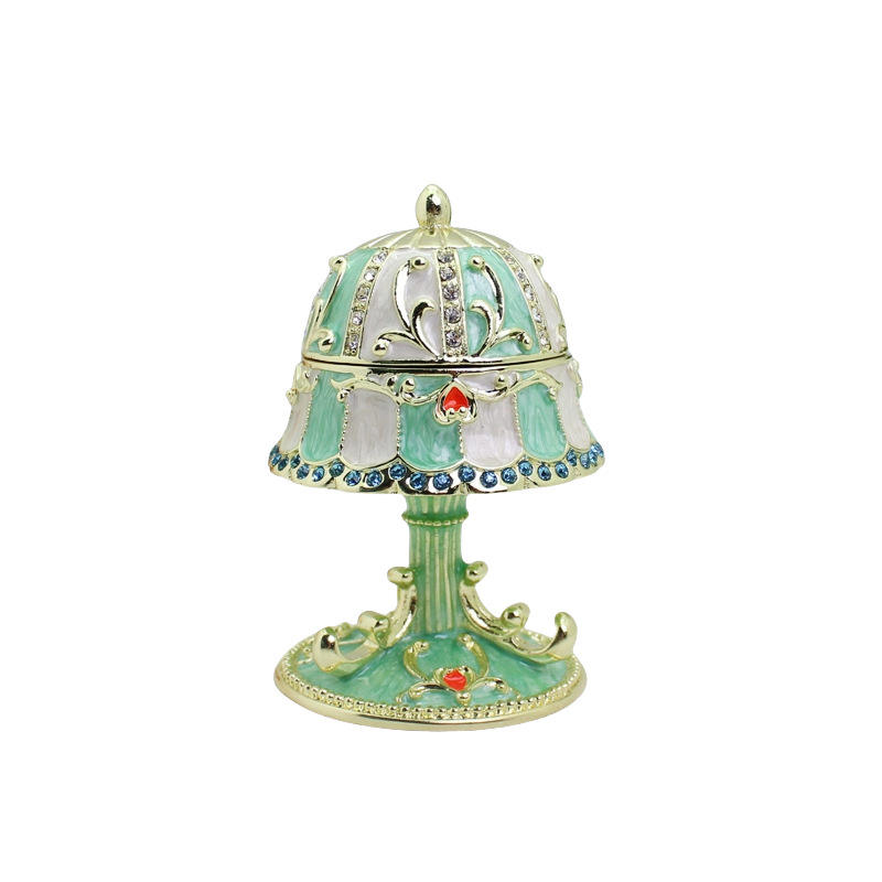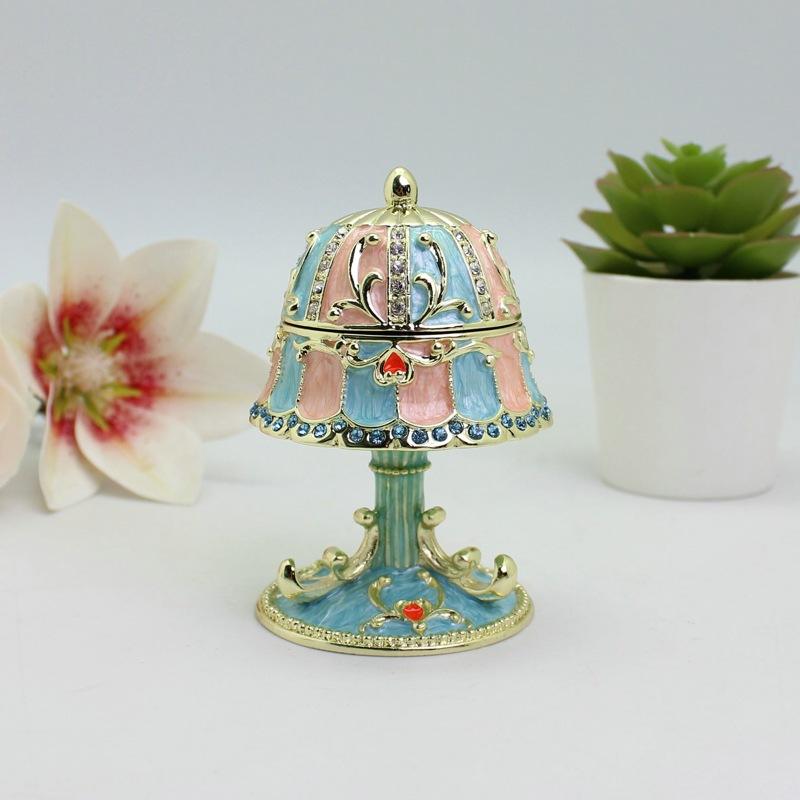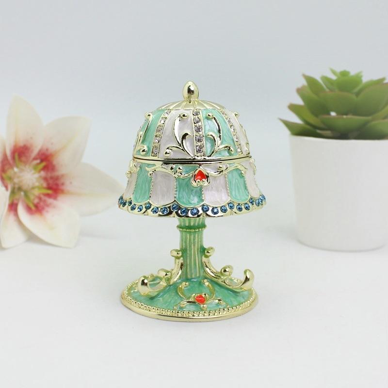 Exquisito Diseño de Caja de Joyería de Peltre Hecha a Mano con Pedrería Colorida Estilo Fabergé