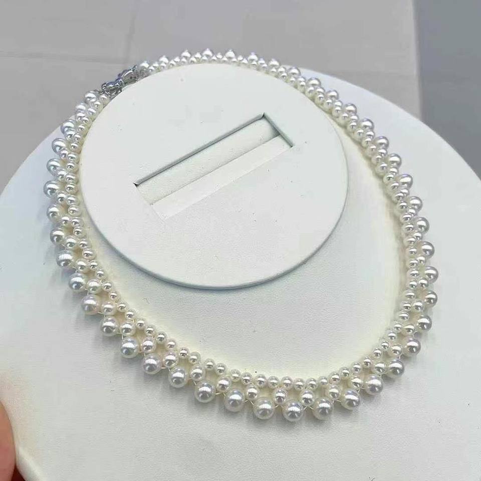 Exquisito y Elegante Collar de Perlas de Agua Dulce de 3-6 mm, Estilo Gargantilla de Encaje Casi Redonda, Calidad Casi Impecable