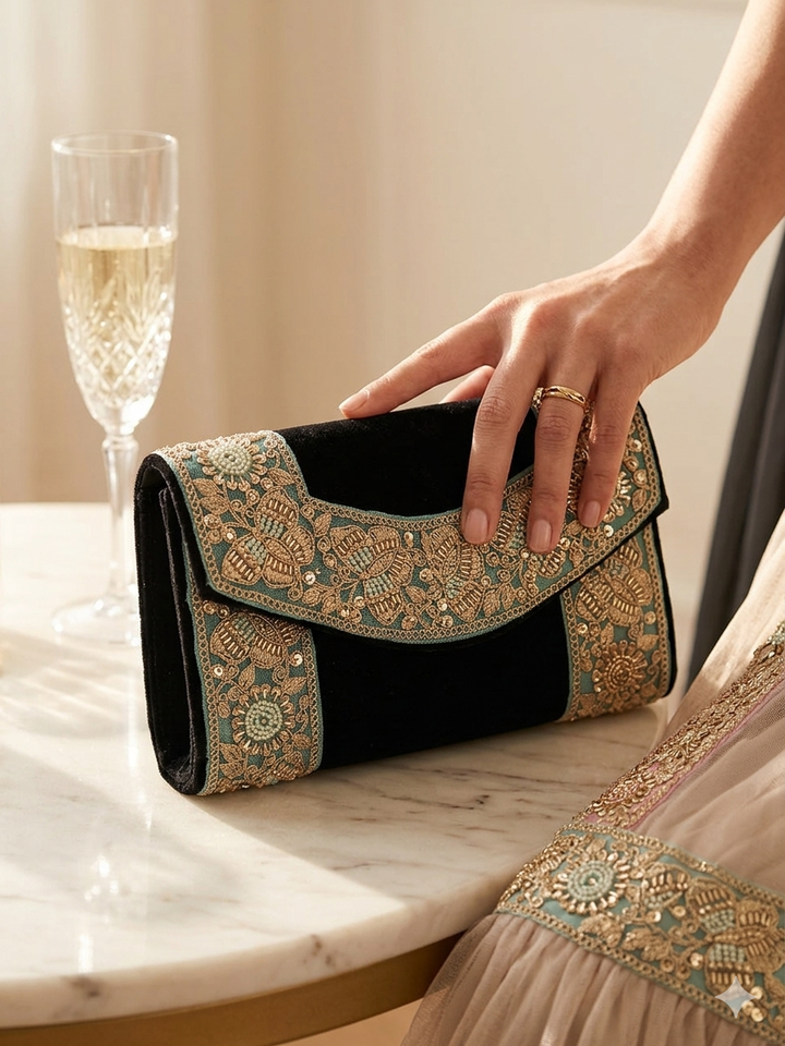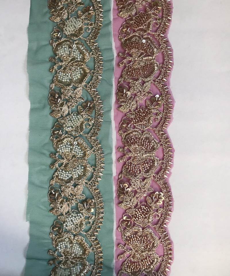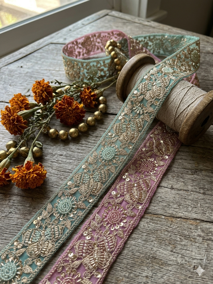 Exquisito y Romántico Saree con Bordado Floral Ecológico Hecho a Mano, con Lentejuelas Metálicas y Pedrería de Precisión, de Primera Calidad