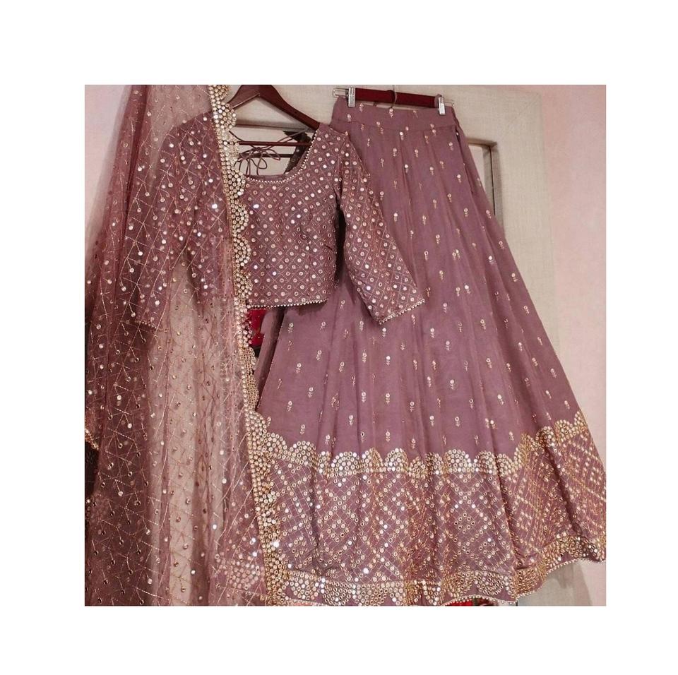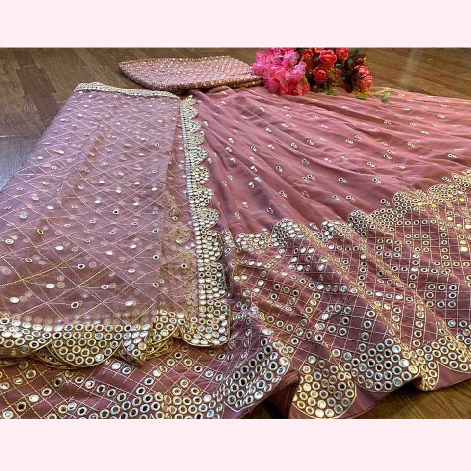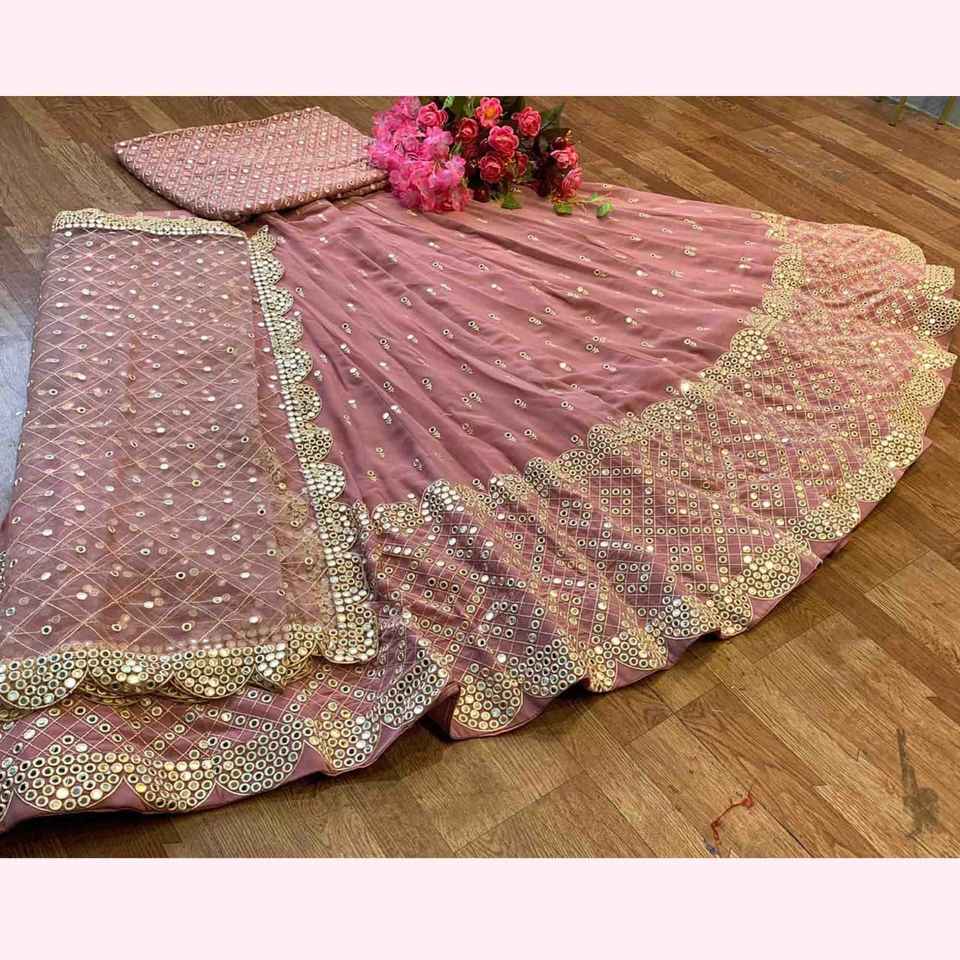Exquisita Faux Georgette con bordado y espejo, ropa nupcial india tradicional con elegante diseñador LEHanga ETHNIC Wear