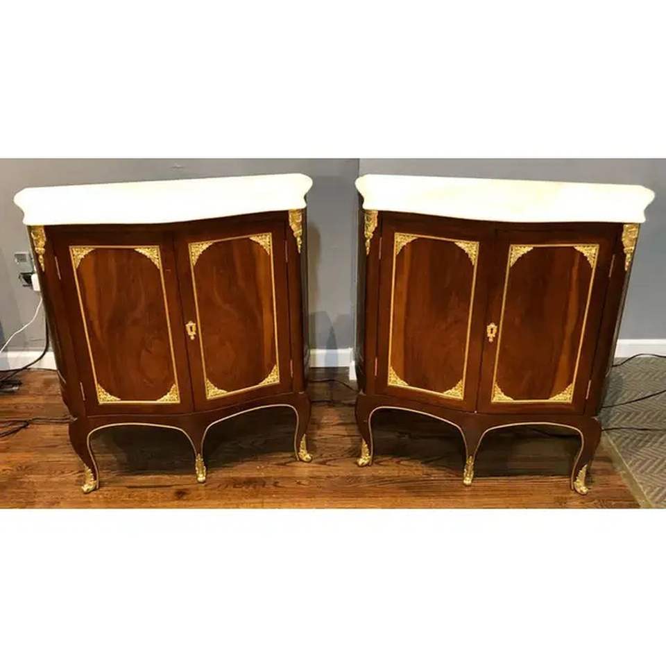 Mesitas de noche de caoba de estilo francés adornos de bronce dorado tapas de mármol exquisito hecho a mano lujoso mesita de noche dormitorio