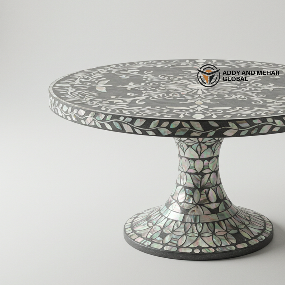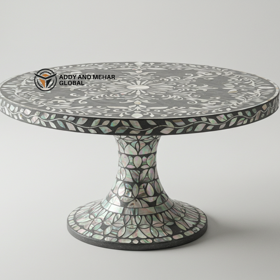Exquisito soporte de pastel con incrustaciones de fregona gris Pedestal decorativo para presentación de postre elegante