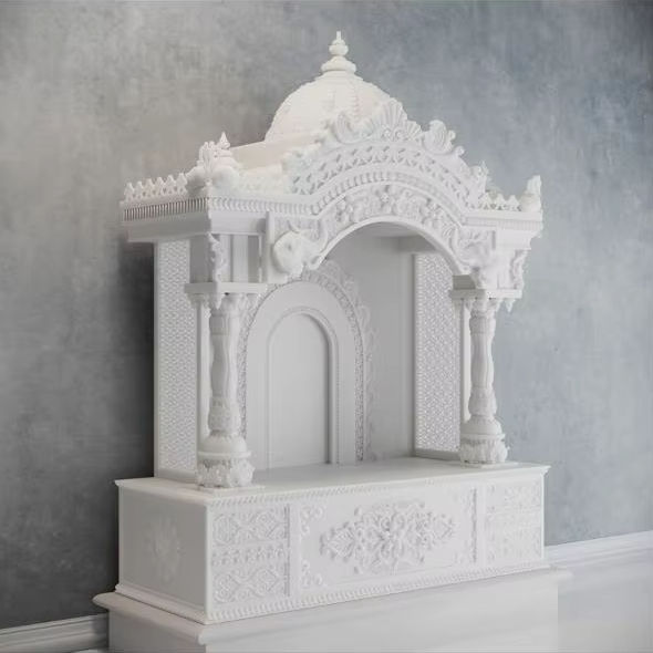 Exquisito Templo de Mármol Blanco Tallado a Mano, Diseños Intrincados, Lujo Tradicional, Pieza Nueva para Decoración del Hogar, Colección de Regalos