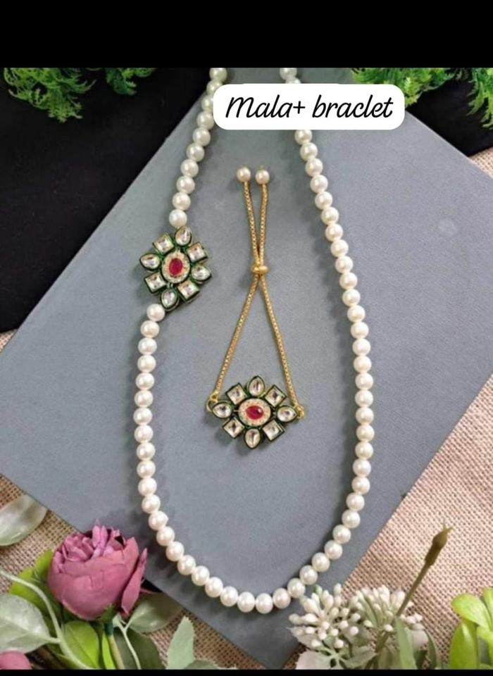 Exquisito conjunto de pulsera y collar de perlas hechos a mano, conjunto de joyería impresionante con motivos florales inspirados en Kundan.